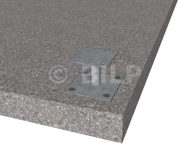 Um einen Pfosten durch Befestigung an der MULTI MONTI-Betonschraube zu montieren, müssen die folgenden Schritte befolgt werden.