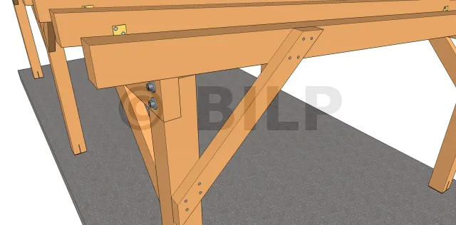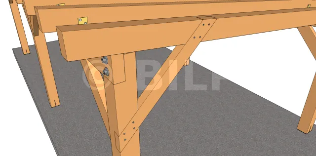 Diese Technik trägt nicht zur Ästhetik der Struktur bei, ist aber effektiv, weil die Strebe eine gute Kontaktfläche an den Befestigungselementen hat. Außerdem wird sie durch die Verankerung in den Kerben begünstigt.