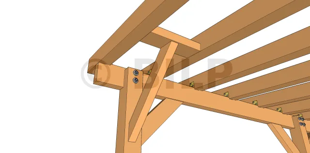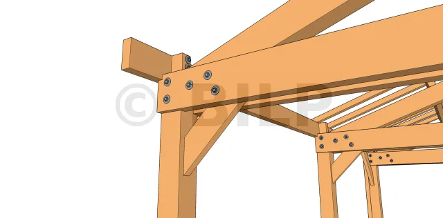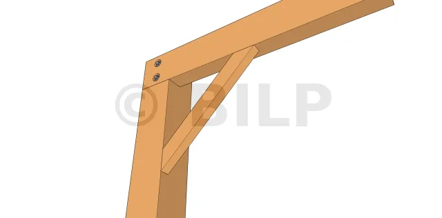 Diese Technik wird eher als "Kopfband" als Strebe bezeichnet. Sie ermöglicht eine Triangulation zwischen dem Ständer und der Pfette. Sie wird im Allgemeinen unter der Oberfläche der Pfette installiert.