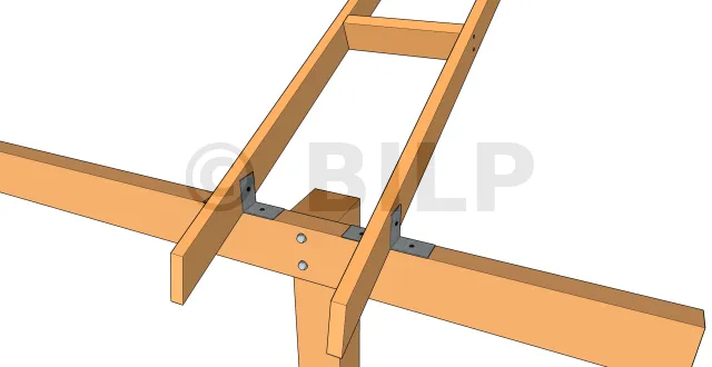 - Befestigen Sie die Aussteifung quer zu den Sparren mit Nägel oder Sechskant-Holzschrauben, wenn die Konstruktion aufgrund ihrer Größe einen größeren Abstandhalter erfordert.
