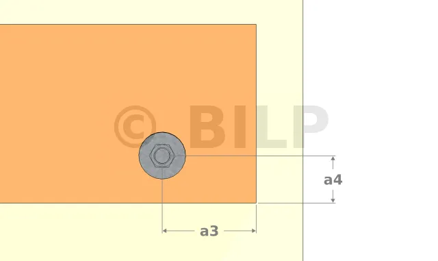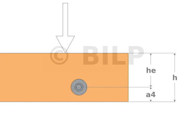 Dazu ist es notwendig, die effektive Höhe "he" des Holzteils zu kennen. Per Definition ist die effektive Höhe der Abstand zwischen der Kante der Achse und der Achse des am weitesten entfernten Schraubenbolzens, wenn man der Richtung der aufgebrachten Kraft folgt. he = h - a4. Natürlich ist dieser Abstand der Mindestabstand von der Unterkante des Holzstücks.