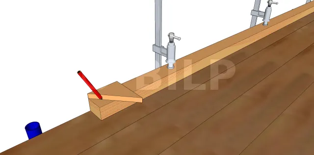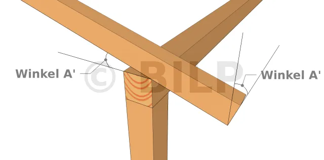 Im Geometrieunterricht wurde uns beigebracht, dass zwei Winkel, deren Seiten paarweise senkrecht zueinander stehen, gleich sind. Um das Ende des Dachsparrens vertikal zu schneiden, muss also der Winkel der Neigung vom Winkelmesser im Verhältnis zur horizontalen Stütze genommen werden.