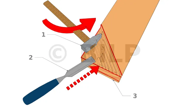Verwenden Sie immer einen Meißel (oder eine Stichsäge), um die vorstehenden Teile des Zapfens zu entfernen.
