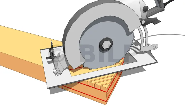 Stellen Sie die Schnitttiefe ein (hier 16 mm). Dann machen Sie mehrere Durchgänge. Die Kürzungen müssen nicht regelmäßig sein. Sie müssen jedoch flach sein, um eine konstante Tiefe zu erhalten. Außerdem muss die letzte 45°-Linie sauber, gerade und präzise sein.
