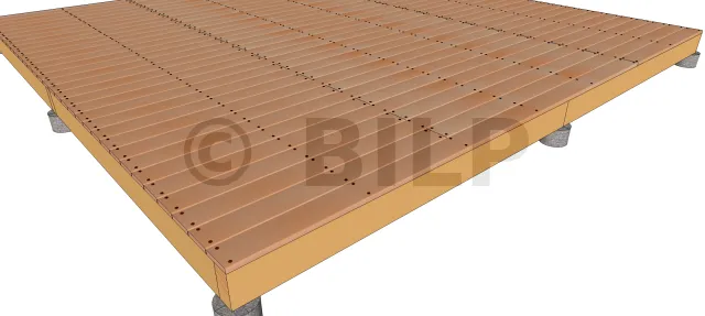 | FBB000 | 2 D5-Schrauben mit L=2,5 x Dicke des Bodenbelags, an jedem Ende und an jedem Unterzugbalken / Balken | 4,08 kN | 3,00 kN |