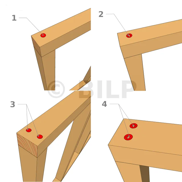 Dies kann entweder mit Schrauben oder mit Nägeln geschehen.