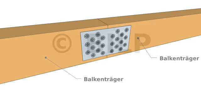 Dieser Befestigungscode ist für zweiteilige Stumpfverbindungen reserviert. Ein Beispiel dafür ist ein nicht ausreichend langer Balken. In diesem Fall muss er mit einem anderen Träger verbunden werden.