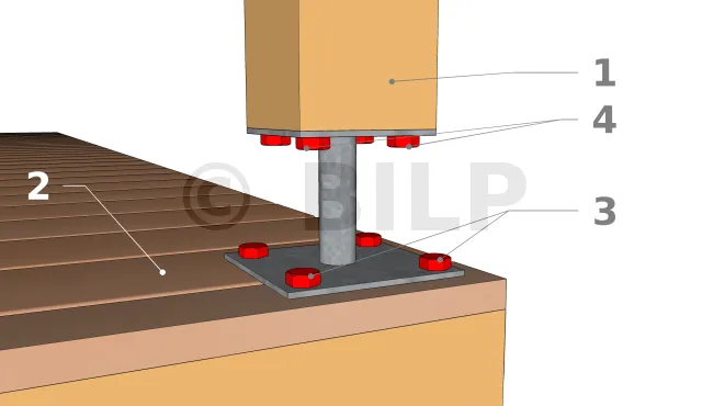 Die verschiedenen Techniken zur Befestigung einer Stütze auf einer Holzplattform sind :