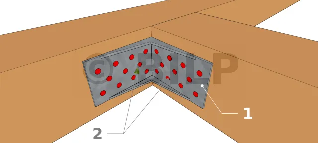 - Die fünfte Methode ist die Verwendung von verstärkten Winkelverbinder. Diese Technik ermöglicht die Befestigung der Balken sowohl an den Enden als auch an den Zwischenteilen. So können die Winkelverbinder mit D5-Schrauben oder sogar mit D4-Nägel befestigt werden.