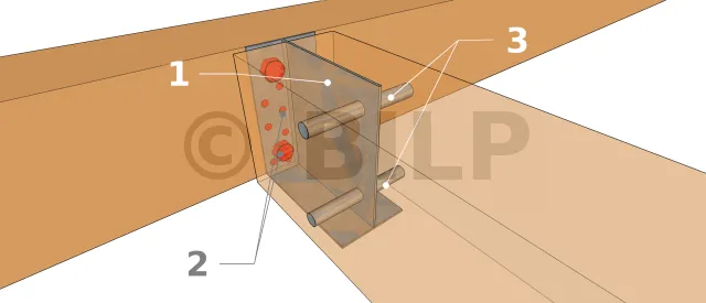 - Die dritte Methode ist die Verwendung von Balkenschuhe mit Außenlaschen. Im Gegensatz zu der bisherigen Technik ist bei dieser Technik die Verwendung an den Enden des Trägers nicht möglich.