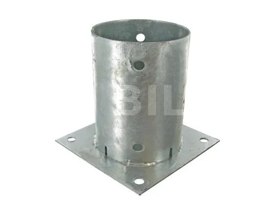 Ob mit oder ohne ausziehbarem Fuß, Wulst oder Zubehör am unteren Ende des Rohrs für die Ableitung des Wassers im Rohr, dieser Pfostenträger ist sehr stabil, da ein guter Teil des Pfostens im Befestigungsrohr gefangen ist. Ihr größter Nachteil ist, dass sie indiskret ist und der Pfostenabschnitt auf die Innenseiten der Röhre beschränkt ist.
