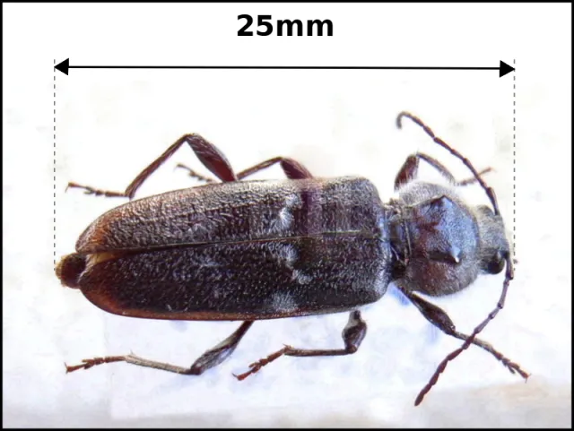 Dieser Käfer, dessen Weibchen im ausgewachsenen Alter 25 mm lang ist, legt seine Eier in Spalten oder Risse des Holzes, auch in gesundem und trockenem Holz. Wie bei allen holzfressenden Insekten ernährt sich das erwachsene Tier nicht vom Holz. Nur die Larve nutzt während ihres Wachstums Holz als Nahrung. Das erwachsene Tier lebt übrigens nur 25 Tage. In dieser Zeit pflanzt es sich fort und legt zwischen Juni und August ein paar Dutzend Eier.