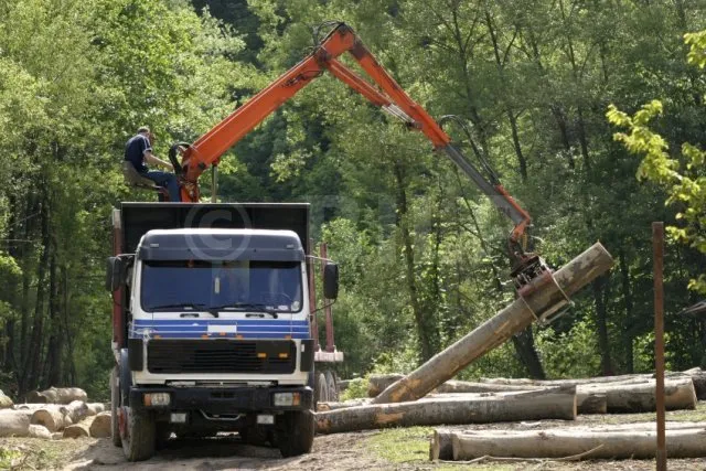 - Langholzernte : die Bäume werden gefällt und an Ort und Stelle entastet und von der Baumkrone befreit. Die Stämme werden dann ins Lager gebracht, zersägt und anschließend mit LKWs ins Sägewerk gefahren.