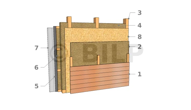 | Die dreifach gedämmte Wand wird häufig zur Reduzierung der Querschnitte der Holzbauweise verwendet.