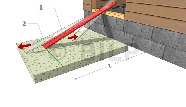 - Die zu errichtende Rampe wird auf der Türschwelle neben der Konstruktion stehen. In der Praxis braucht man nur ein Brett zwischen Boden und Türöffnung zu legen, um die betreffende Steigung zu finden. Probieren Sie mehrere Positionen aus, bis Sie mit der Steigung zufrieden sind.