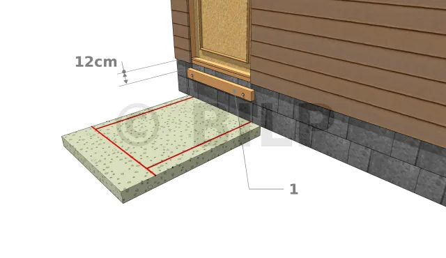 - Zeichnen Sie eine horizontale Niveaulinie 12 cm von der Unterseite der Tür entfernt ein, um die Oberkante des Mauerbalkens (1) zu bestimmen.