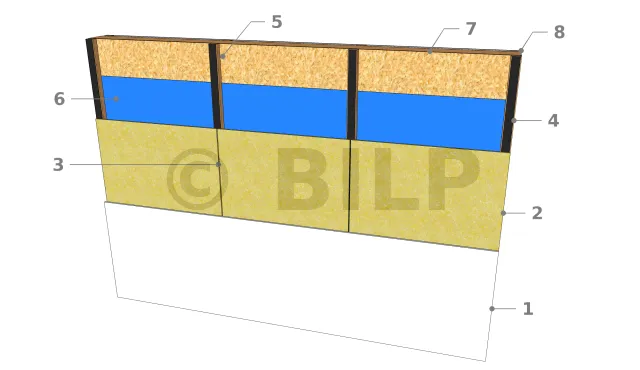 - 1 : Betonplatte bis an dem zweischaligen Mauerwerk