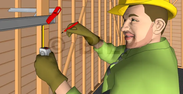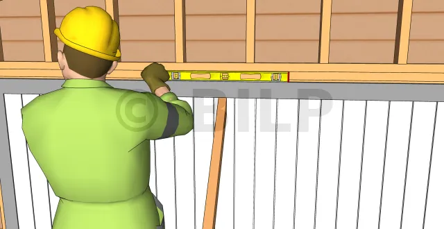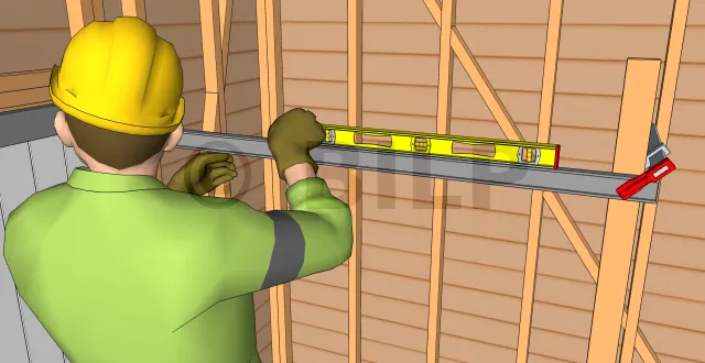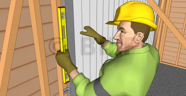 - Stellen Sie eine Wasserwaage auf einen der Pfosten des Rahmens, um seine Vertikalität zu überprüfen.