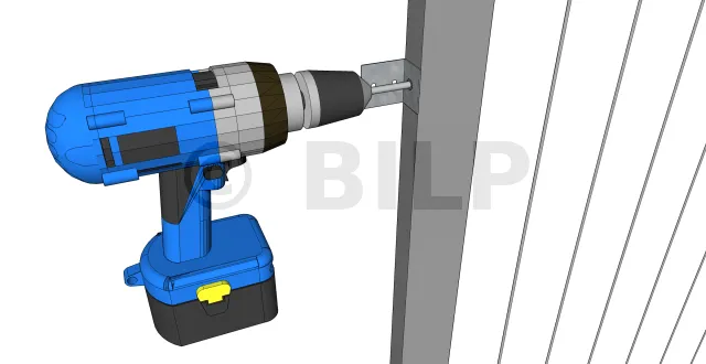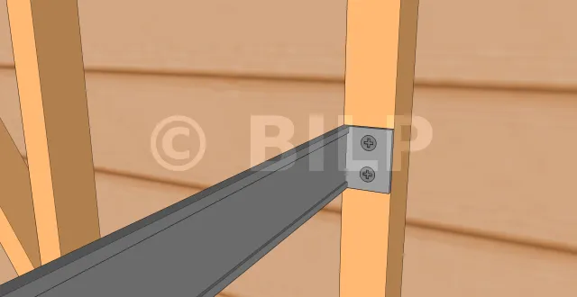 - Befestigen Sie die Winkelverbinder eines der Pfosten mit Schrauben an der Garage. Allerdings sollten sie noch nicht vollständig verschärft werden. Dadurch können Sie einige Anpassungen an der Türposition vornehmen.