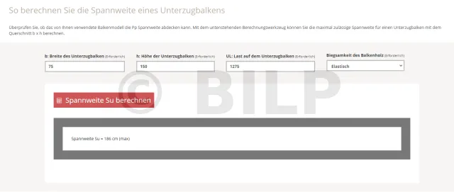Diese Methode wird verwendet, um die maximale Spannweite zu berechnen, die der ausgewählte Tragbalken tragen kann.