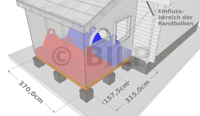 Um die auf die Randträger übertragenen Lasten zu erhalten, muss die von den Trägern beanspruchte Bodenfläche bestimmt werden, die als Einflussbereich bezeichnet wird.