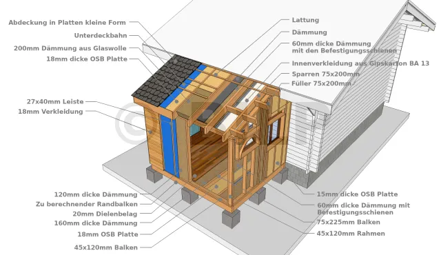- Deckentyp : OSB-Platte oder 18 mm-Partikel