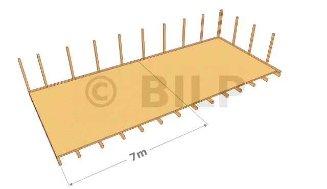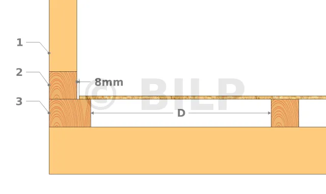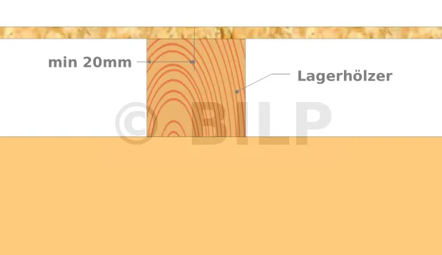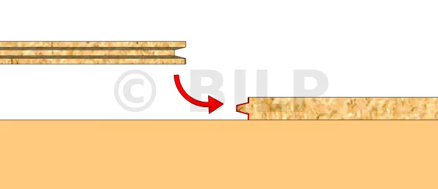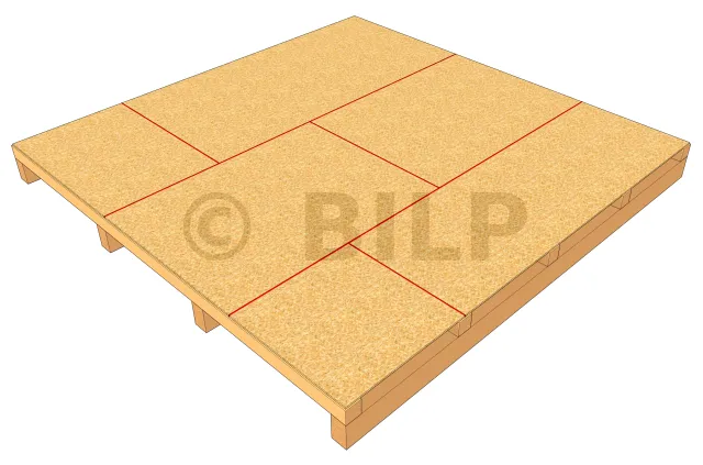 Beim Verlegen der Platten muss die Längsrichtung senkrecht zu den Stützen stehen. Befindet sich die Kante der Platte an der Kante einer Wand oder eines Anschlags, muss ein Spalt von 8 mm gelassen werden, um eine Ausdehnung zu ermöglichen.